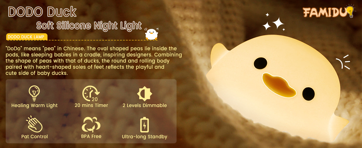 این جوجه اردک نور ملایمی ایجاد میکنه، قابل تنظیم برای ۲۰ دقیقه تا کوچولوتون راحت بخوابه و گواهی BPA داره که ضمانت میده برای تماس برای نرمی و ضد حساسیت